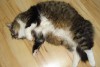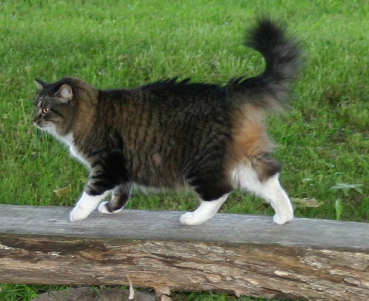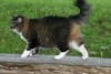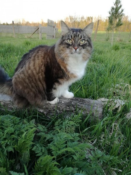 Pūkaina, tumši strīpaina ar baltu pakakli, kājām un pavēderi. Pazuda Kuldīgas rajonā, bet ir iespējami manīta Jūrmalā/Mārupē. Atradējam garantēta atlīdzība!