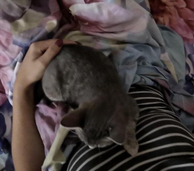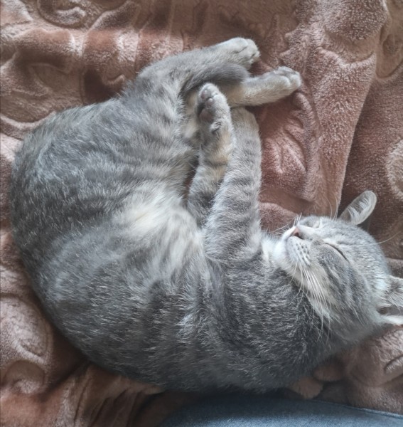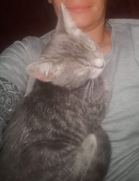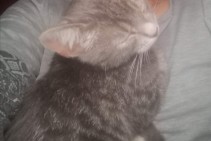 Pazuda pelēks kaķēns 6 mēnešu vecs ar baltu punktiņu uz austiņas.