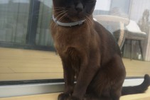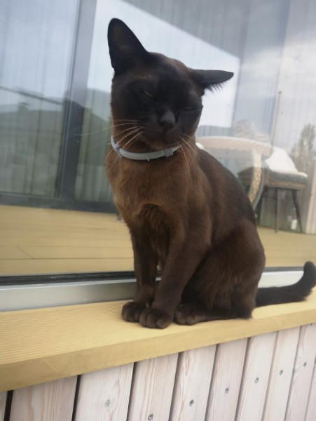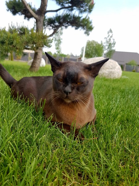 Burmas šķirnes runcis, brūnimelnā krāsā, dzeltenas acis.