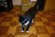Pazudis kaķis melnais ar balto krūtiņu un ķepiņām. Atsaucas uz vārdu Šustrik.
