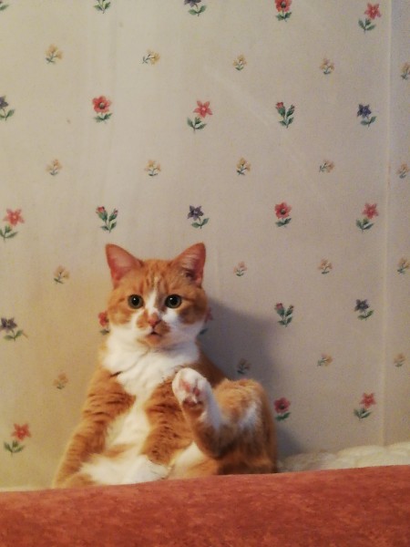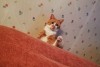Rudais kakis, loti mazs, pazaudes ar pavadu, rudais ar baltu krasu