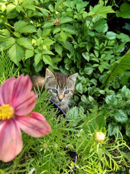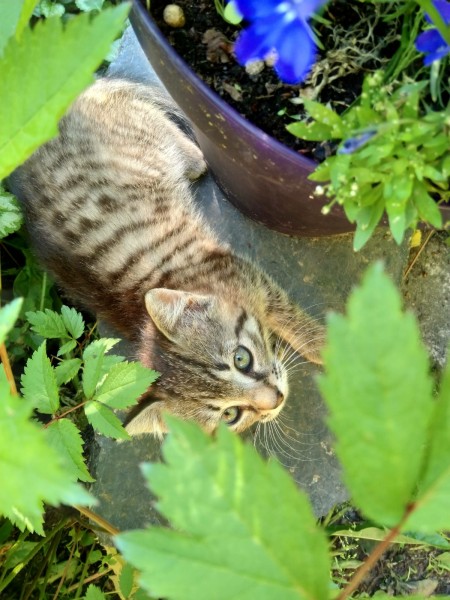 4 mēnešus veca strīpaina kaķenīte, ļoti droša, draudzīga.