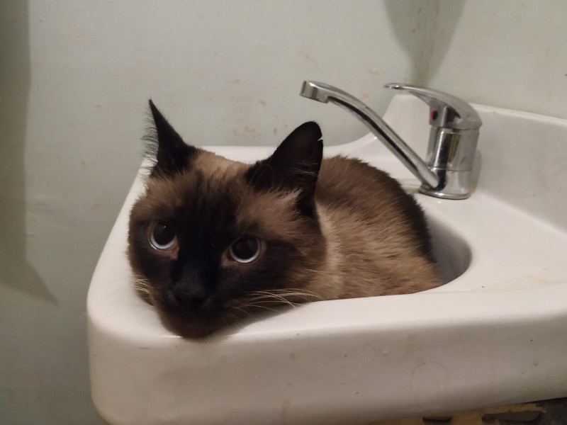 Сиамский (тайский) кот. Ласковый, но пугливый, осторожный. Есть характерная метка - левое ушко немного порвано. Может отозваться на имя Марс, Марсик.