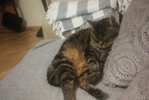 Pazudusi kaķene, atsaucas uz vārdu Pīka. Brūna ar strīpām. Īpašās pazīmes - astes gals saliekts tādā kā āķītī.