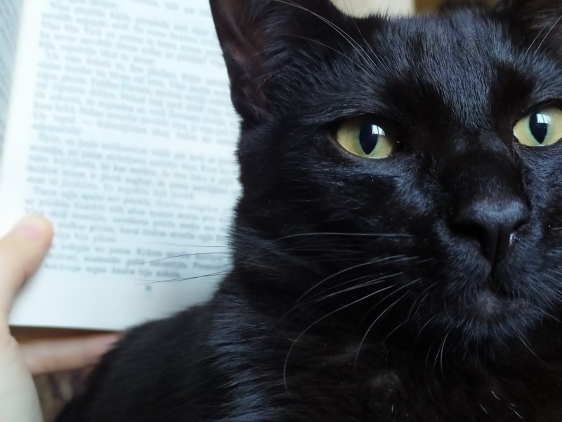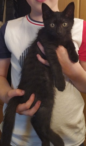 Melns ar dzeltenām acīm, izstieptu purniņu, garām ausīm un garu asti.