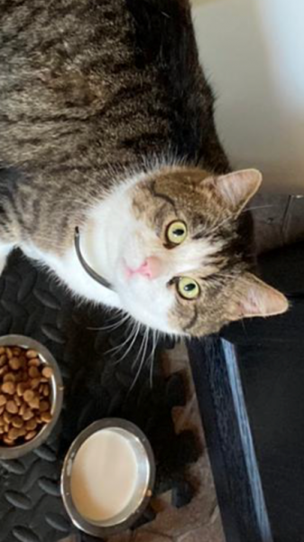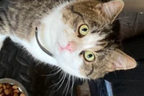ļoti liels, mīlīgs kakis peleki strīpains ar baltu purniņu un baltām ķepiņām