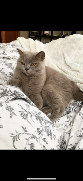Pelēka kaķene ar Dzintaru krāsas acīm
