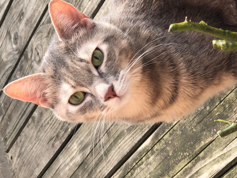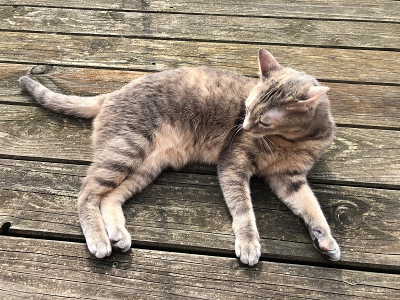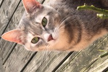 Viegli svītrota pelēka ar baltganu vēderu kaķīnīte. 3 gadi. Mierīga. Mājas. Pie āra nav pieradināta. Pazuda naktī no 6-7 Jūliju.