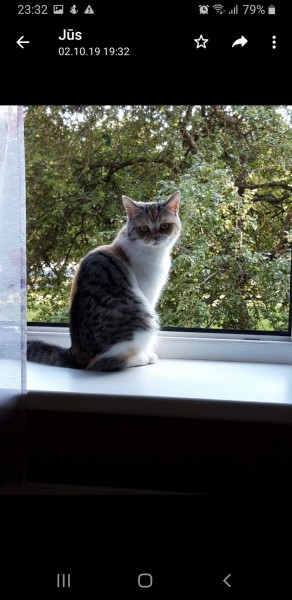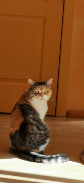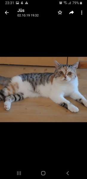 Skotu stávausu,dzintara krásas acis,saplacinàts purnińš.Trískràsaina(balts,smilšu krásas,melns)