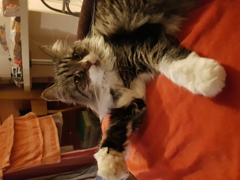 Pazudusi Iļğuciemā, Saulgožu ielā. Mājas kaķene, Mince. Nesen sterilizēta. Garspalvaina, baltu apkakli, kuplu asti, svītrainu muguru.