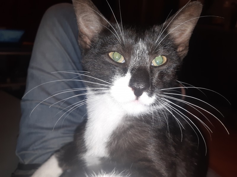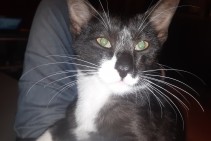 Uz kakla siksniņa ar melnu žetonu un gravējumu Džonis un manu tel nr 22153151