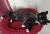 Pazudusi kaķenīte, 4 mēneši, Purvciemā, pie Dzelzavas ielas 74/1 . Melna ar baltu krūtiņu, baltām ķepiņām.