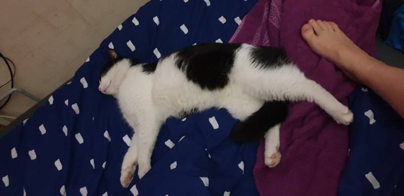 Melnbalts runcis, ļoti mīļš, dodas rokās, gaužas pie kājām. Paliels.