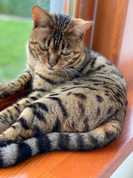 Pazudis kaķis Ērkšķu ielas rajonā, bengālietis,ap kaklu melna siksniņa ar sudraba piekariņu.
