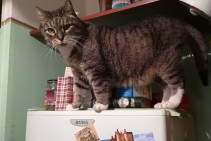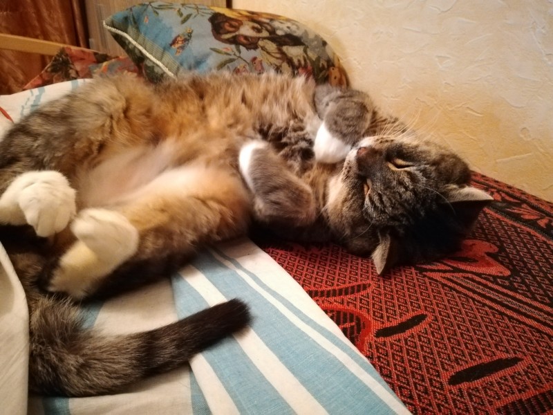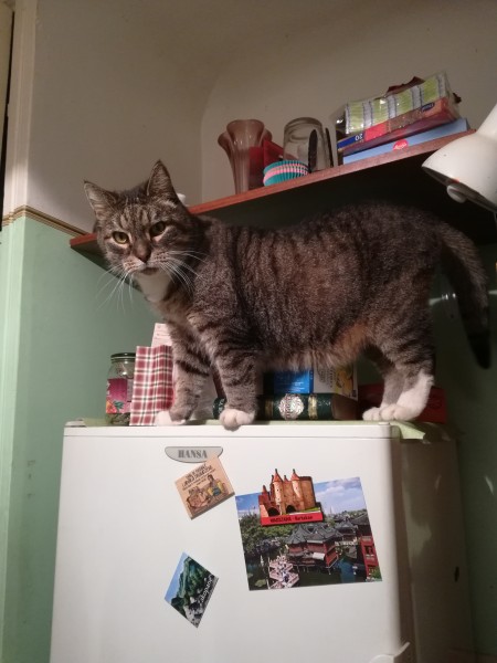 Brūni pelēki svītrains. Pēc izskata līdzīgs citiem mājas/ielas kaķiem, bet lielāks par vidusmēra kaķi. Baltas ķepiņas un krādziņa, aizmugurējām ķepām baltās zeķītes nedaudz garākas. Ap acīm gaišāks krāsojums, kas tās izceļ, acis zaļgan dzeltenas.