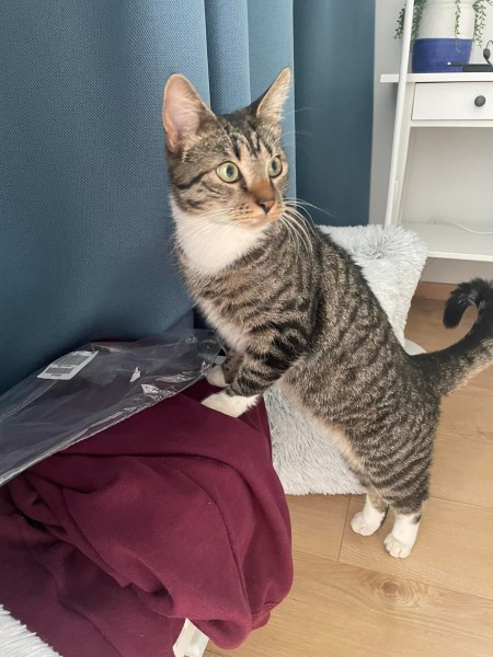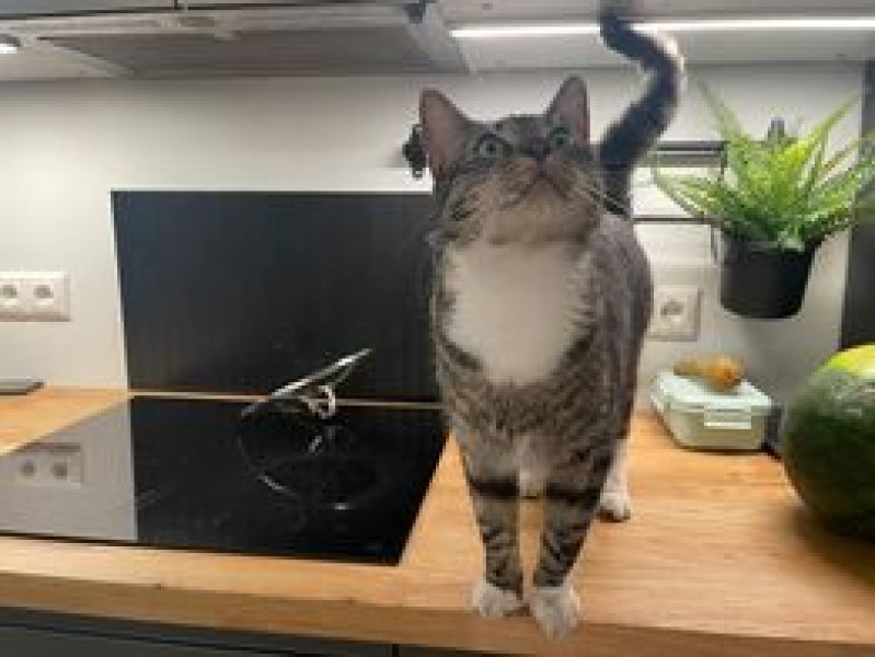 Klasiskais lauku kaķis, tīģerēns augšpusē, balsts apakšā. Ļoti dradzīgs, ūsas lido uz visām pusēm. Ņaud kā dziedātājs. Ir kastrēts. Nav čipots.