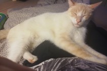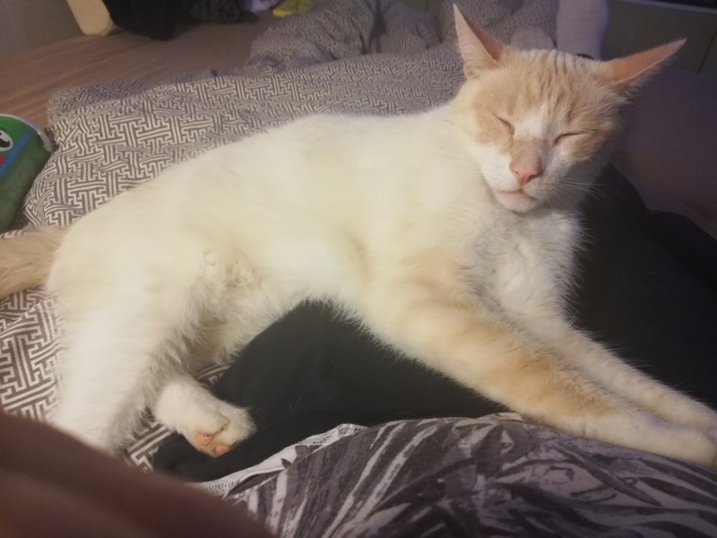 Pazudis balts kaķis ar rudu-bēšu krāsojumu pie galvas, astes. Liela auguma, garām kājām.