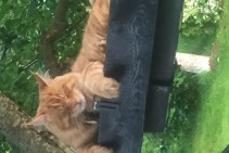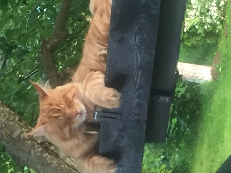 Рыжий кот, пуглив и неохотно идёт на руки.