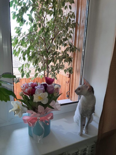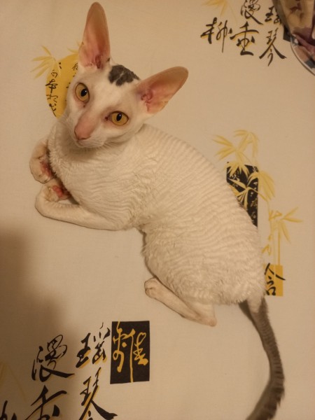 A cat disappeared, with a gray spot on its head, a wavy back, yellow eyes, long legs, a Cornish Rex. The cat was wearing a blue collar. Shy. Name - Diema. Requires daily intake of 1/4 tablet of Metoprolol 75 mg - for heart failure