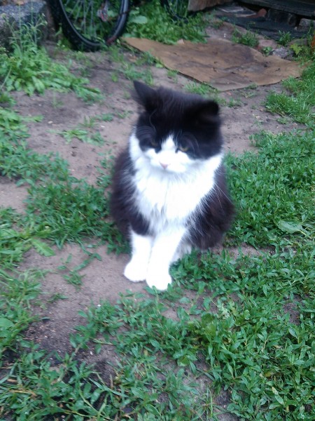 Garspalvaina. Melna pierīte, austiņas, mugura un aste. Balts purniņš (trīstūrītī), kājas un ķepas, vēders. Dzintara actiņas.