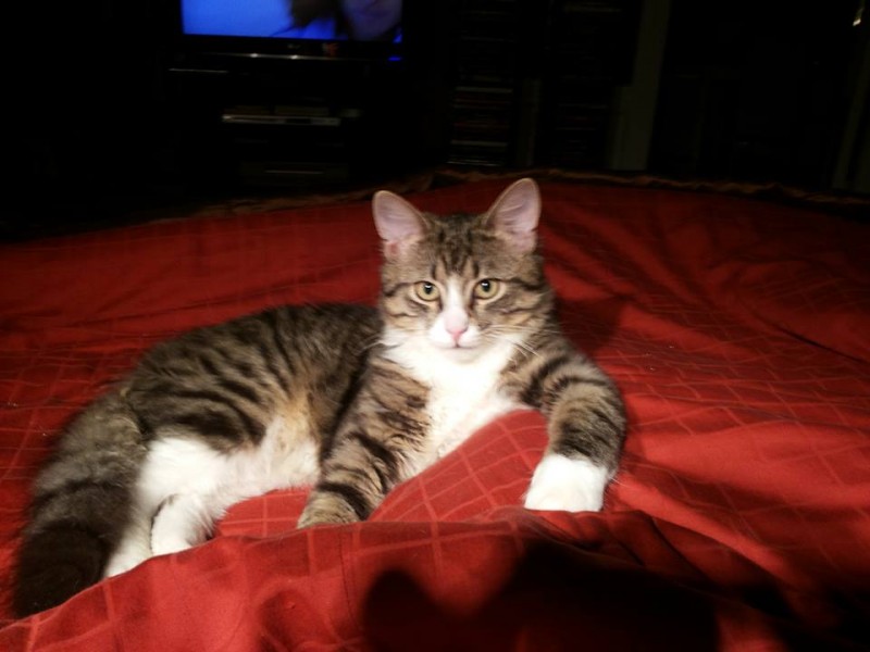 Ir pazudis runcis - pelēkstrīpains ar baltu pavēderi, degunu un ļoti kuplu asti!