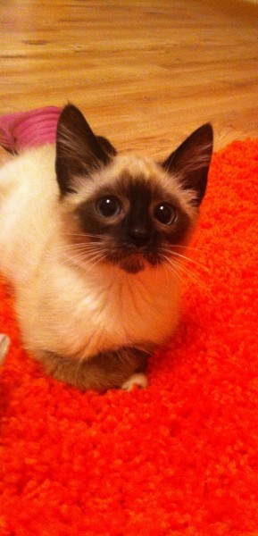 Atsaucas uz vārdu Bella. Ļoti līdzīga siāmietim. Melns purniņš, melnas priekšējāš ķepiņas. Gaiša pelēcīgi brūna spalva.