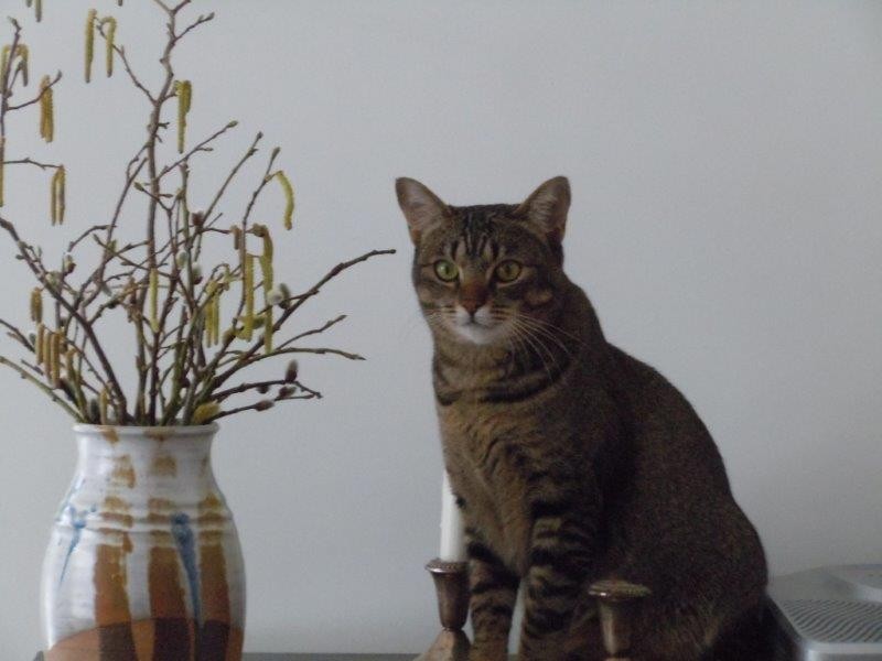 pelēcīgi brūngana, īsspalvaina, kājas ar svītrojumu, acis dzeltenas