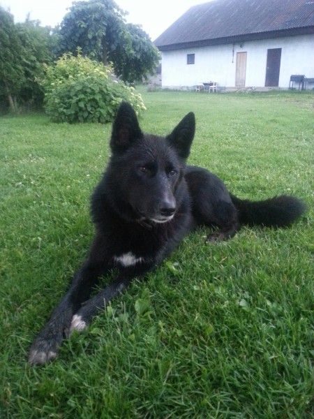 paliela auguma, melns ar baltām ķepām un baltu krūtiņu