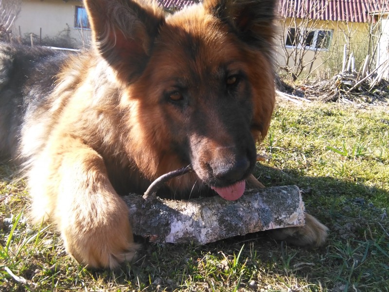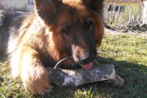 Brūna kaklasikniņa ar plāksnīti uz kuras ir telefona numurs.