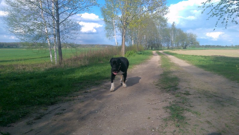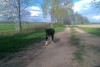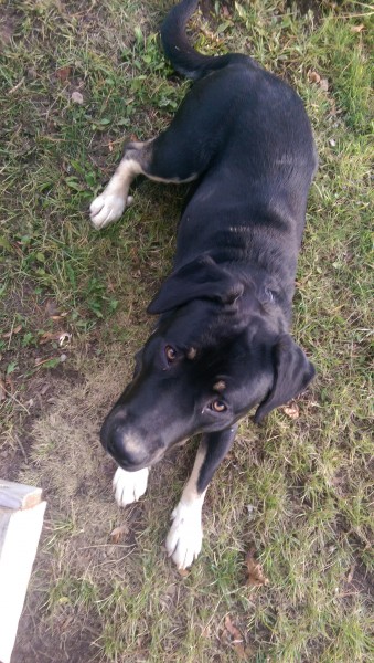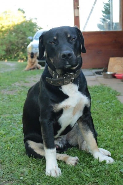 Pazudis amerikāņu stradfordšīras terjers, melns ar priekšā baltu. Suns ir bailīgs, nav agresīvs.