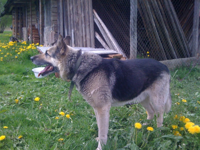 Vilka laikas krustojums, tumšu muguru, gaišām kājām un pavēderi, stāvām ausīm, ap kaklu pelēka brezenta-ādas siksniņa, 14 gadus vecs, ļoti slikti dzird, toties mīl vizināties automašīnā. Ļoti draudzīgs. Atsaucas uz vārdu Zero.