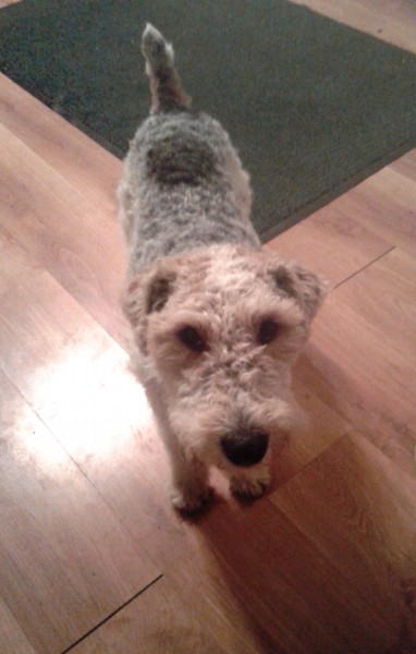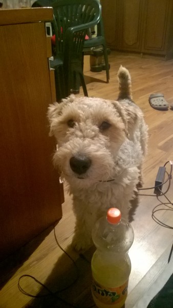Vidēja auguma. Baltā krāsā ar melnu punktu uz muguras. Atsaucas uz vārdu Rigo. Draudzīgs.