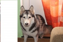 хаски волчьего окраса была в красном ошейнике и на красном поводке(рулетка 5 метров)