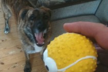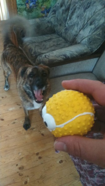 Brūns ar tumšām svītriņām un noļukušām ausīm, astes gals balts, bailigs, atsaucas uz vardu Timons vai Mimis