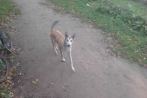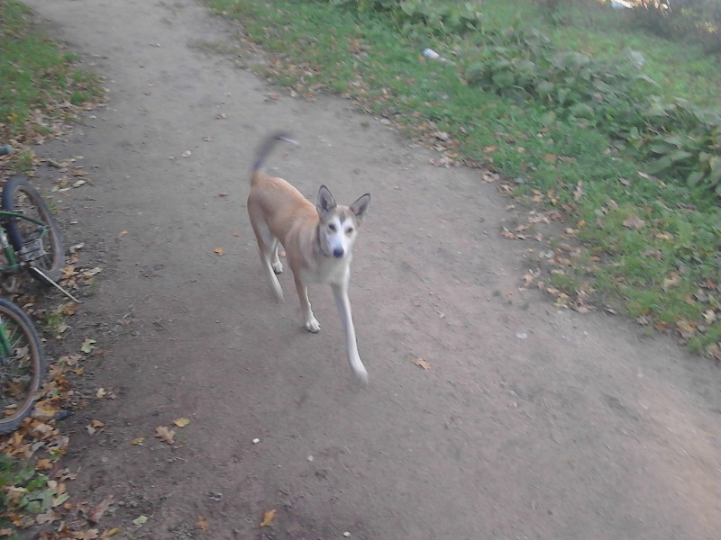 Liela auguma suņumeitene,rudismilšu krāsā,haskija un vācu aitassuņa krustojums.balta kakla siksniņa. Atsucas uz vārda Ronda.