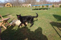 Melna ar mazu zvaigznīti baltu krūtīs. Sarkana kakla siksna.Draudzīga