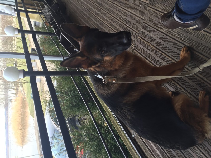Vācu aitu suns, krāsa - melns ar rudu. Atsaucās uz vārdu Ava. Neagresīva. Reaģē uz komandām krievu valodā. Draudzīgs un mīlīgs.