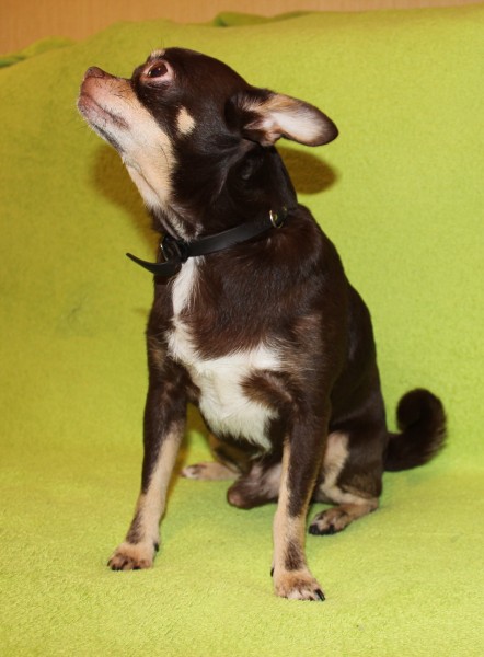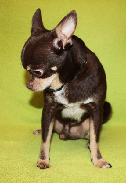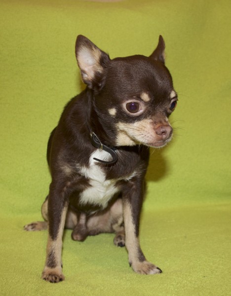 7 gads vecs čihua-hua tumši brūns suņu puika vārdā Čalis.