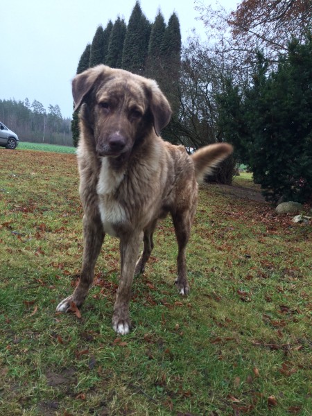 Atsaucas uz vārdu Čārlijs. Suns ir liela auguma.