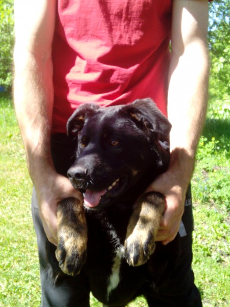 30.10.2016 pazudis rotvellera un vācu aitu sugas krustojuma suns. 14 mēneši vecs, melns ar baltu svītru uz krūtīm