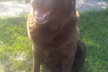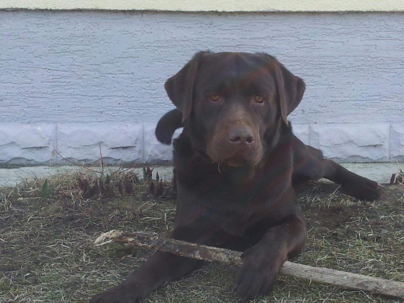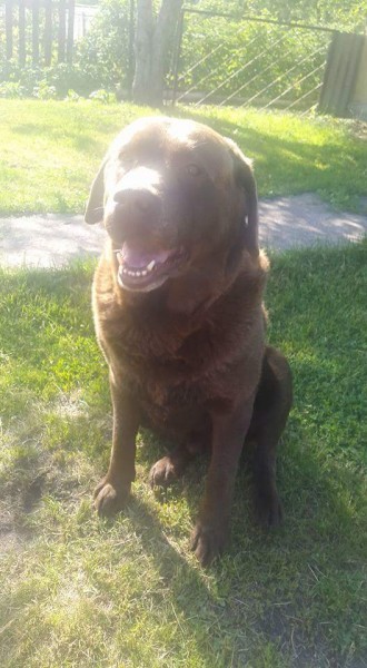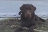 Šokolades labradors aizskreja no majas teritorijas Sužis, Garkalnes novads.