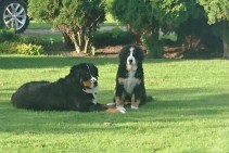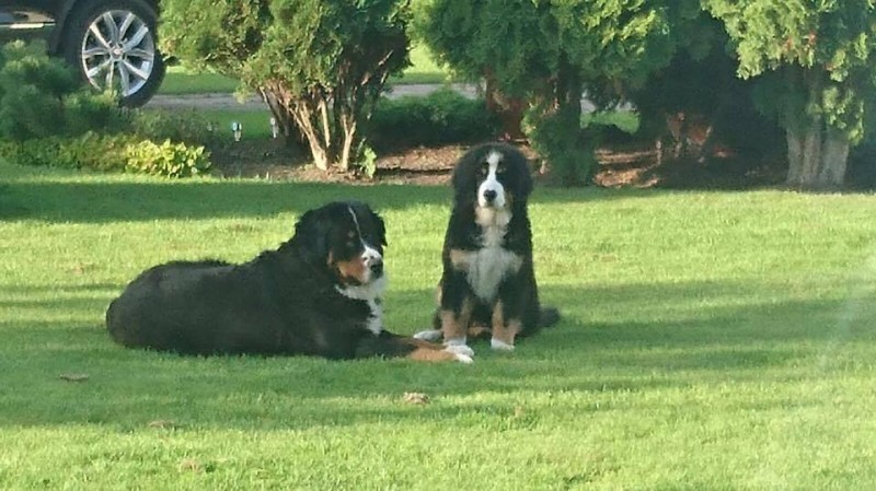 Valmierā pazudis Bernes ganu suns (melns ar baltu - attēlā pa labi).