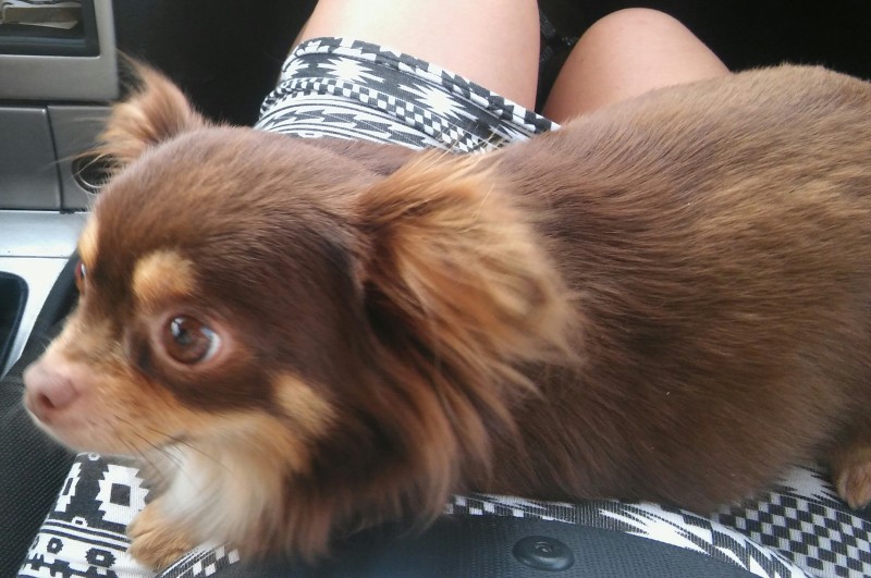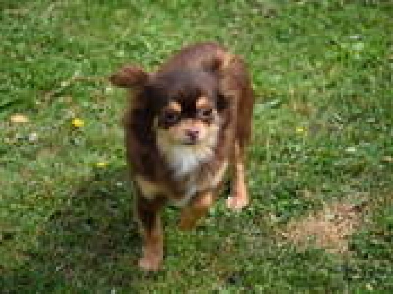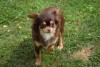 Šokolādes krāsas, garspalvaina chihuahua meitene.
