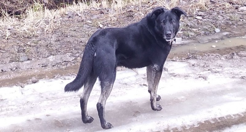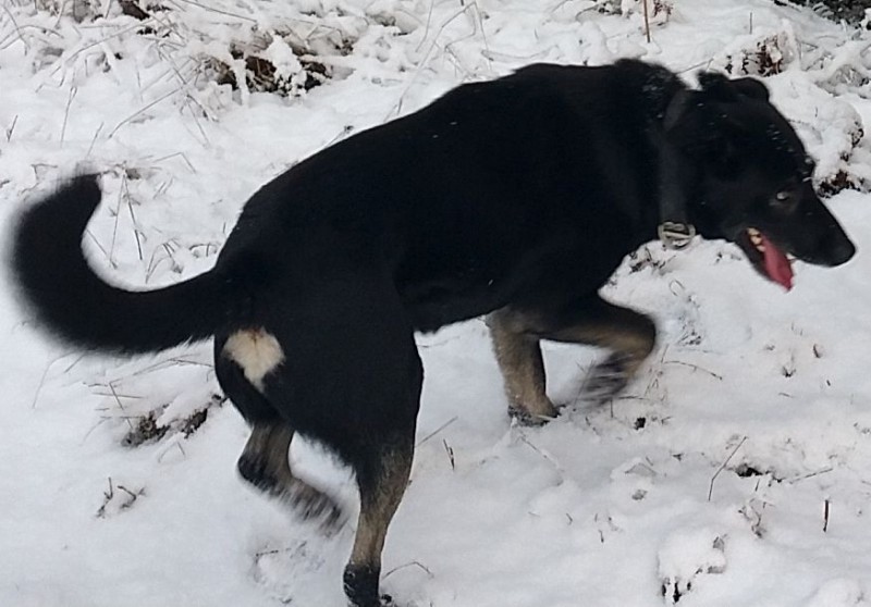 Cenu pagasts. Vidēji liels, ap 26kg smags. Melns, ar baltu plankumu uz pakaļas, mazliet klibo uz aizmugurējo kāju.