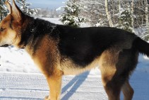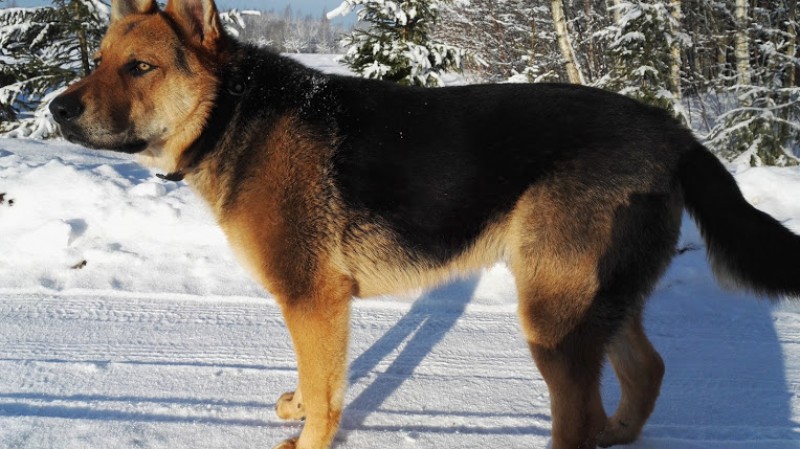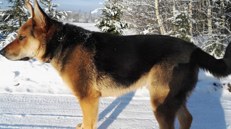 Gadu vecs vilku sugas suns, melnas krāsas ar gaiši brūnu.
