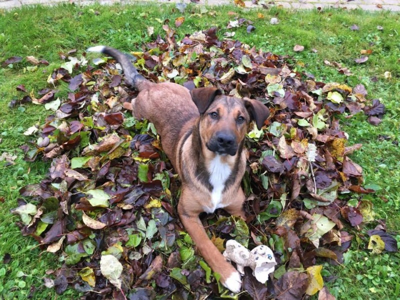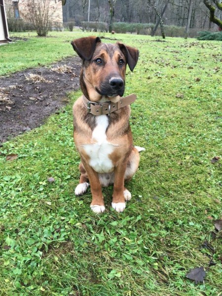Gudrs, taču svešā vietā var būt bailīgs, jo iepriekš nekad no mājām prom nav klaiņojis. Draudzīgs, taču svešiniekiem var ar uzriet. Brūns, pakakle, ķepas un astes gals balti, bērnībā gūtās traumas rezultātā pieklibo ar pakaļējo labo kāju.