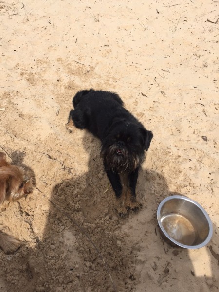 Melns un ruds apmatojums. Ir bailīga. Sauc Pumba.