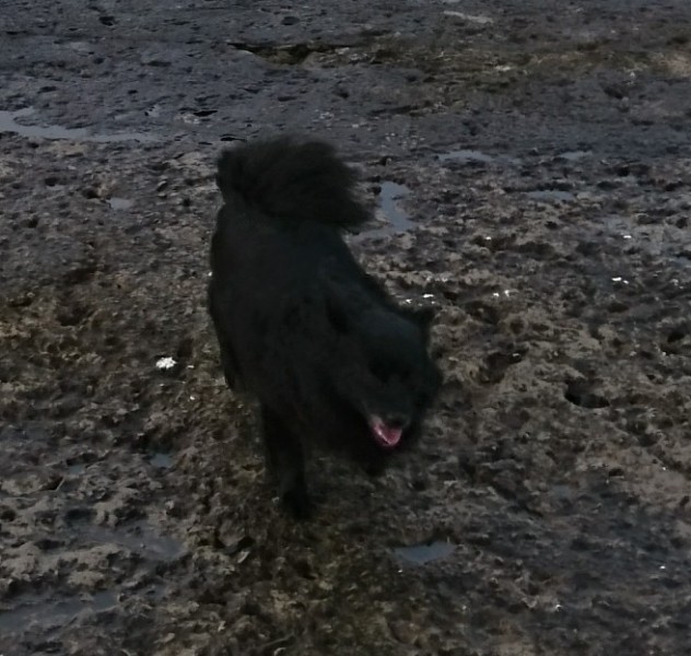Pilnīgi melna ar iesirmu bārdiņu. ~25cm augsta