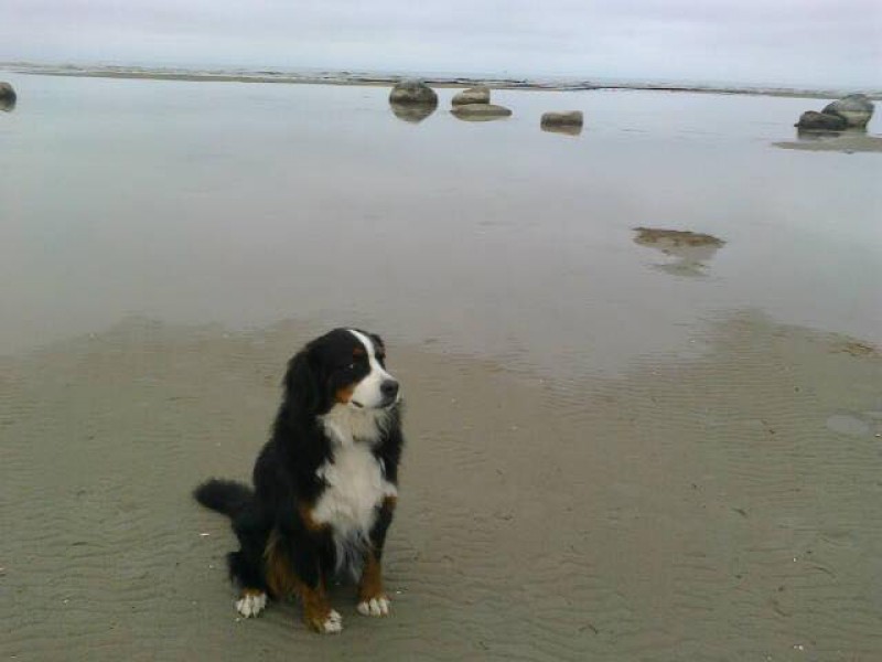 Melna ar baltu (purniņš, krūtis, pavēdere vairāk balta), ļoti nedaudz vietām brūns. Ap kaklu pelēka kakla siksniņa. Garspalvaina. Ļoti bail no negaisa un salūtiem. Sabijās un aizmuka no salūta Doles salā 23.06.2017 vakarā (vēlā Līgo vakarā ).