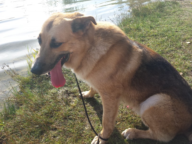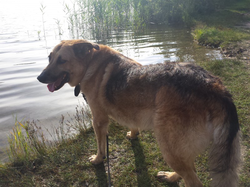 Liela auguma suns ,brūns ar melnu.Ausis nokarājas uz leju.Atsaucas uz vārdu.RIKS.